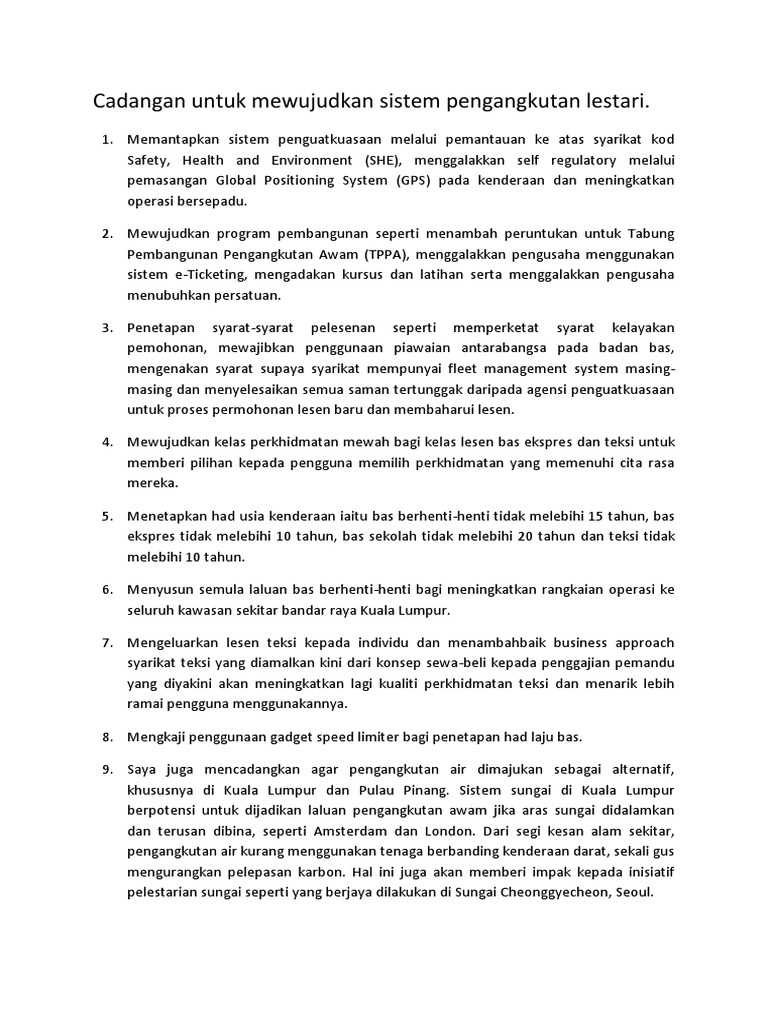 Cadangan Untuk Mewujudkan Sistem Pengangkutan Lestari Pbs Pdf